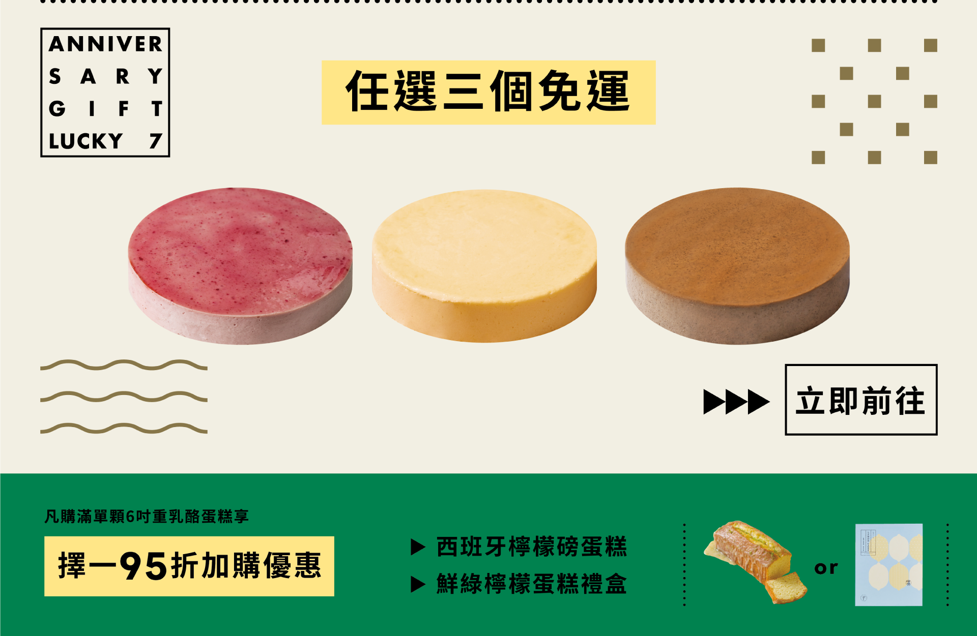 活動2: 【免運專區】依原價任選3個6吋重乳酪蛋糕即享免運
