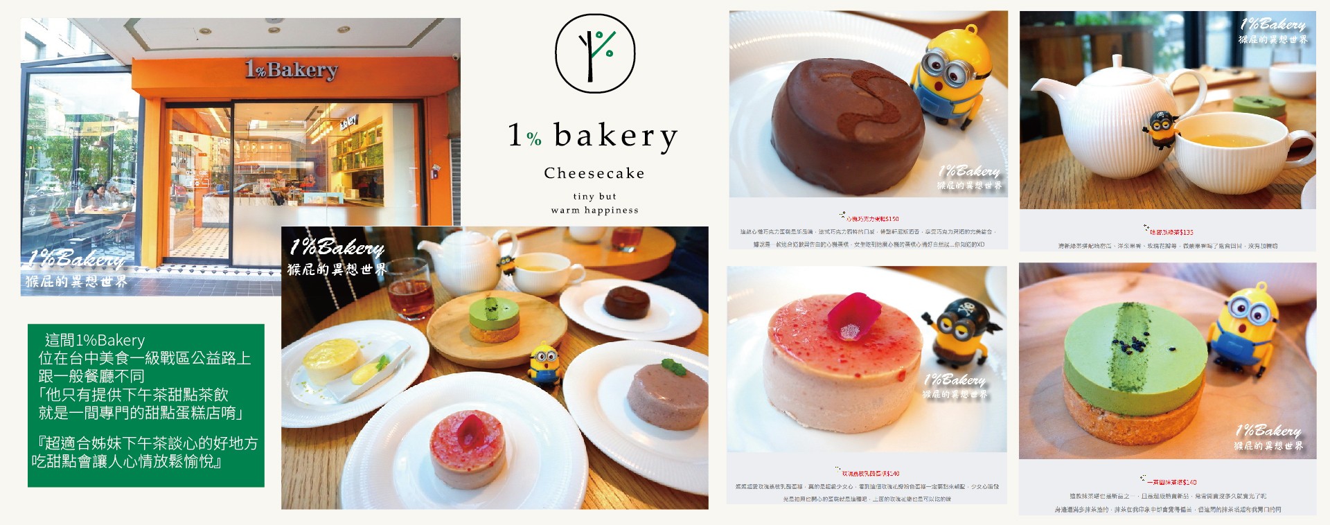 台中超好吃下午茶甜點蛋糕。1%Bakery 乳酪蛋糕。精緻可愛療癒系美食。濃郁乳酪完美比例呈現幸福美味。本文登上奇摩首頁