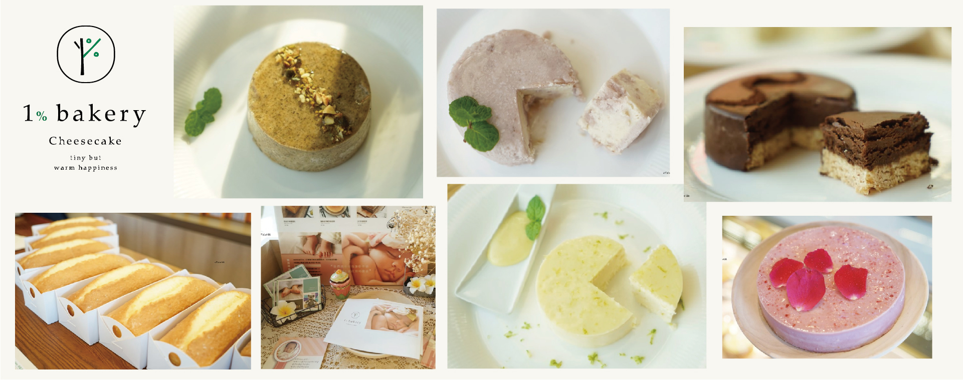 1% bakery店名的由來是因為店家每個月都會捐贈盈餘的1%給改善教育的機構,販售甜點的同時也希望能回饋社會!除了有2.5吋可以一個人享用,也有6吋的很適合節慶拿來慶祝!