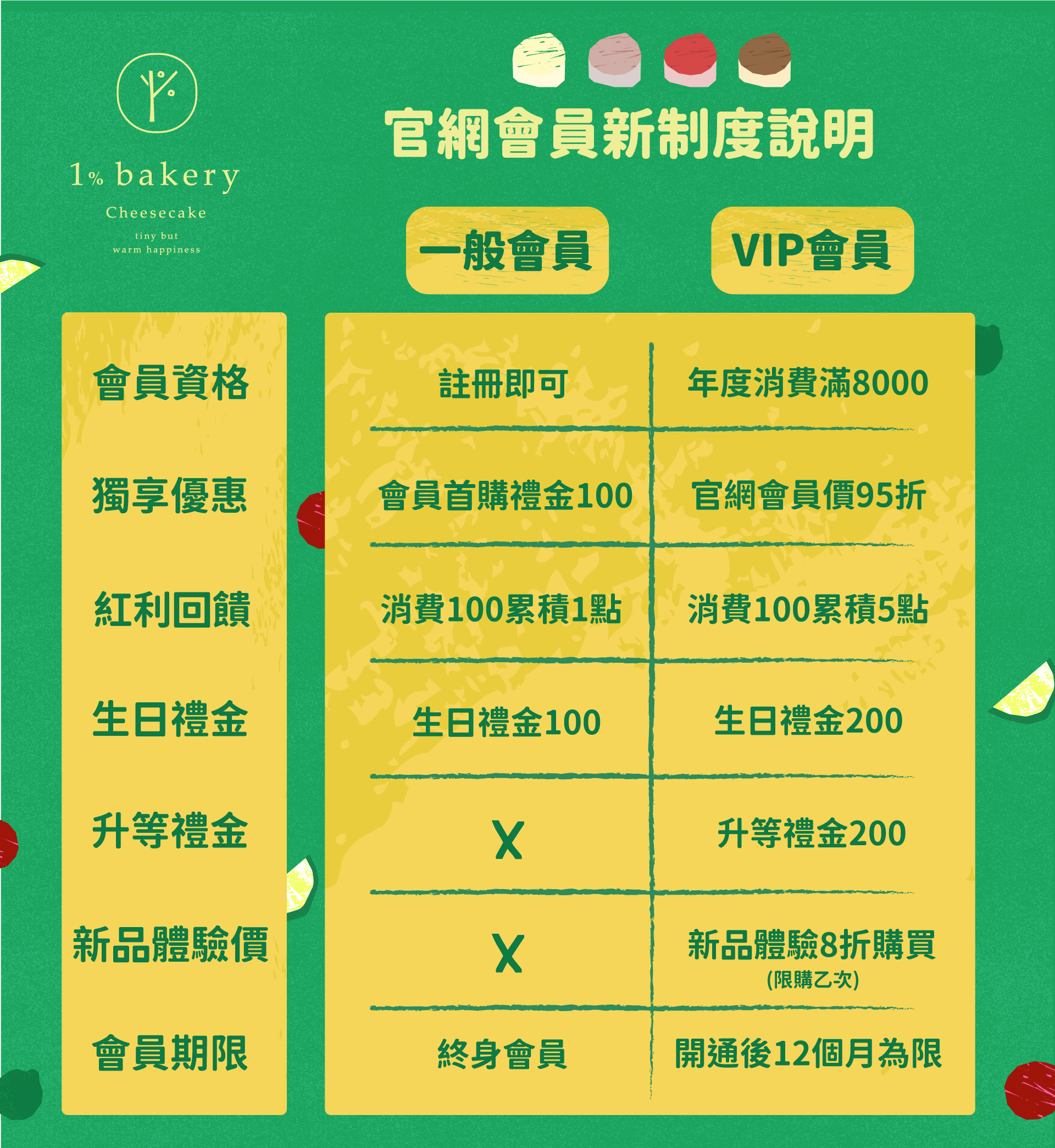 註冊會員並成立第一筆訂單消費後,(不包含您達成升級時的訂單金額)如一年內未達VIP升等標準,次年需再重新累積。