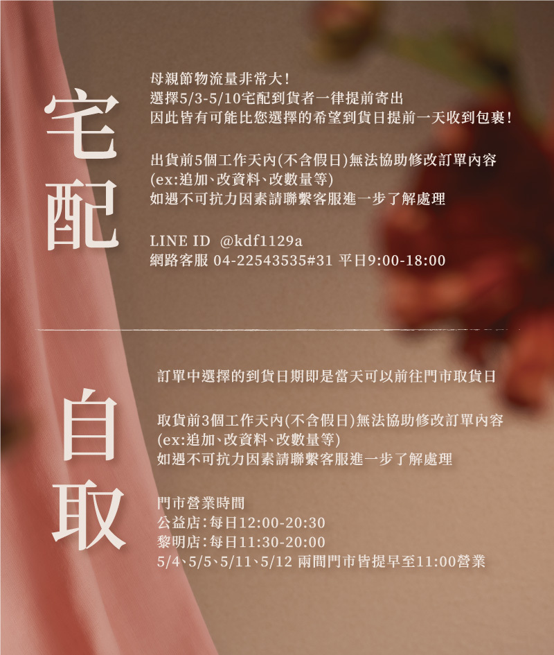 專人服務訂購或母親節訂購優惠詳情諮詢