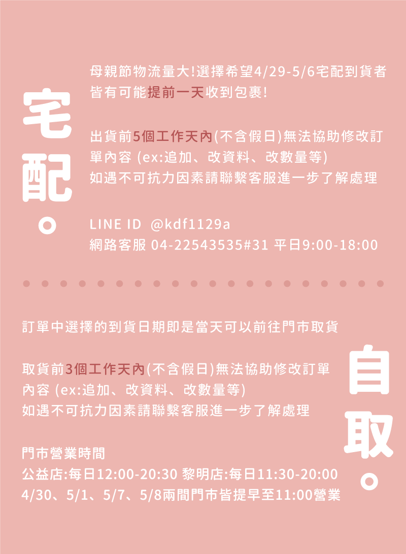 ⚠️取貨時間須為4/29-5/8才享母親節預購優惠⚠️