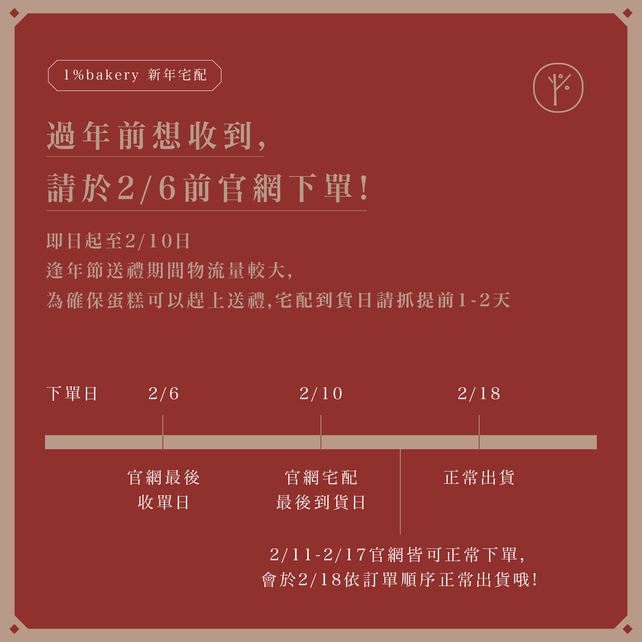 新年送禮蛋糕官網宅配最後到貨日: 2/10 Wed